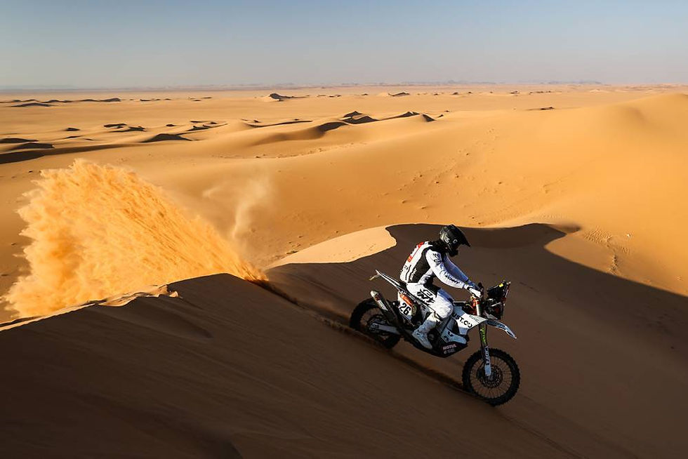 Daniel Sanders ha aprovechado el trayecto con destino a Hail para recuperar el liderato del rally. Autor del cuarto mejor tiempo del día, a 5'50'' de su compañero, el vigente campeón podría estar recogiendo los frutos de una estrategia minuciosamente diseñada por el clan KTM. Tomará la salida mañana de una etapa compuesta casi íntegramente por dunas desde una posición ventajosa y, posiblemente, encontrará un aliado para la navegación en la segunda parte del recorrido.